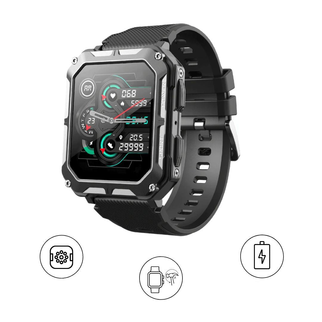 Ihre Unzerstörbare Smartwatch wurde strengstens auf extreme Temperaturen, Stöße, Vibrationen, Feuchtigkeit und Höhe getestet .