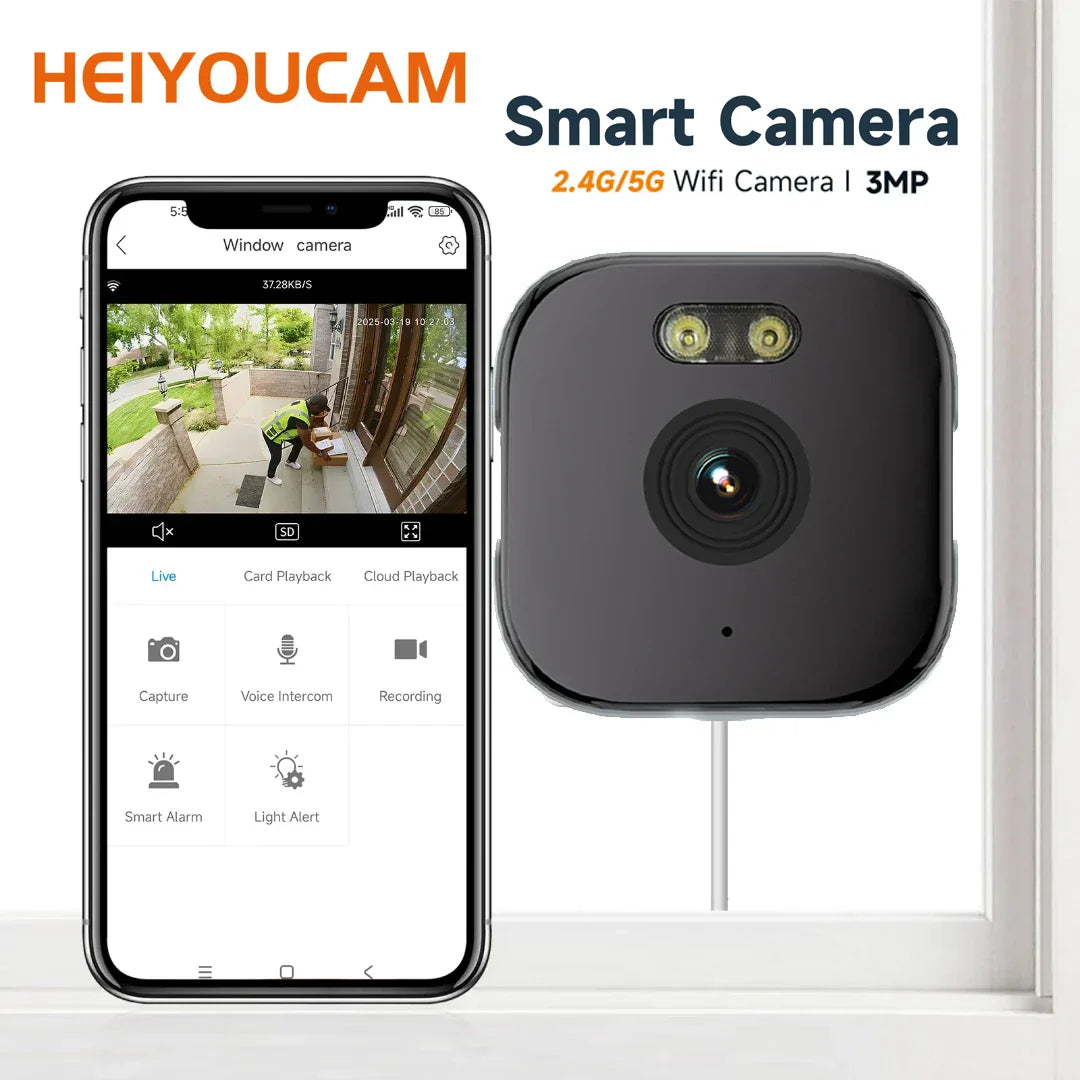 Fenster-Sicherheitskamera 3MP 2K, Dual-Band WLAN, Farbnachtsicht, 2er-Pack