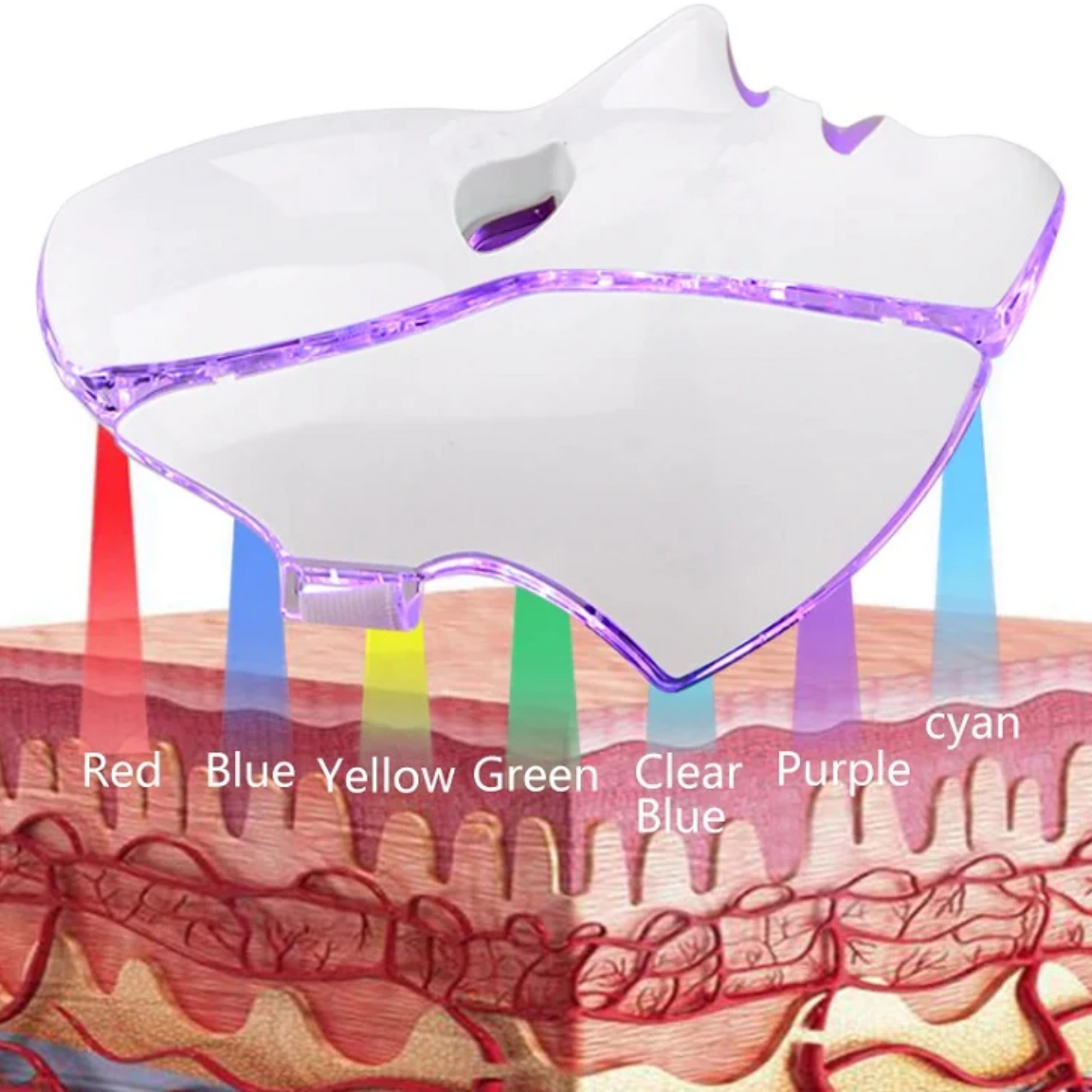 - Lila Licht (600nm): Vereint rotes und blaues Licht zur Verbesserung der lymphatischen Drainage, reduziert Narben und entspannt die Haut.