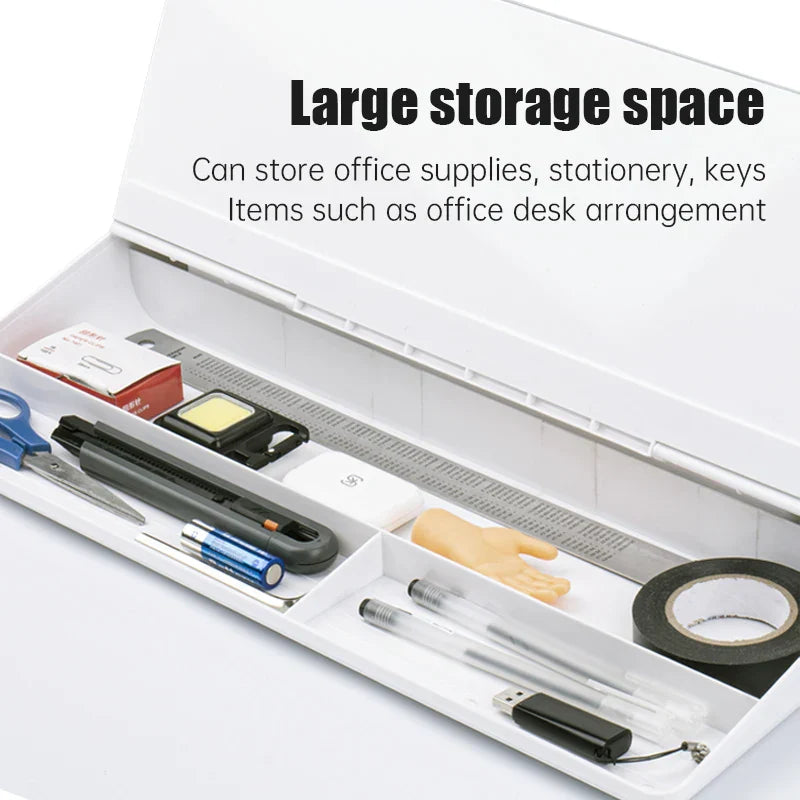 ● Legen Sie Marker auf das Zubehörfach für einfachen Zugriff oder lagern Sie zusätzliches Desktop-Zubehör wie einen magnetischen Radiergummi und Marker in der Öffnungsschublade, um Ihren Schreibtisch zu entrümpeln.