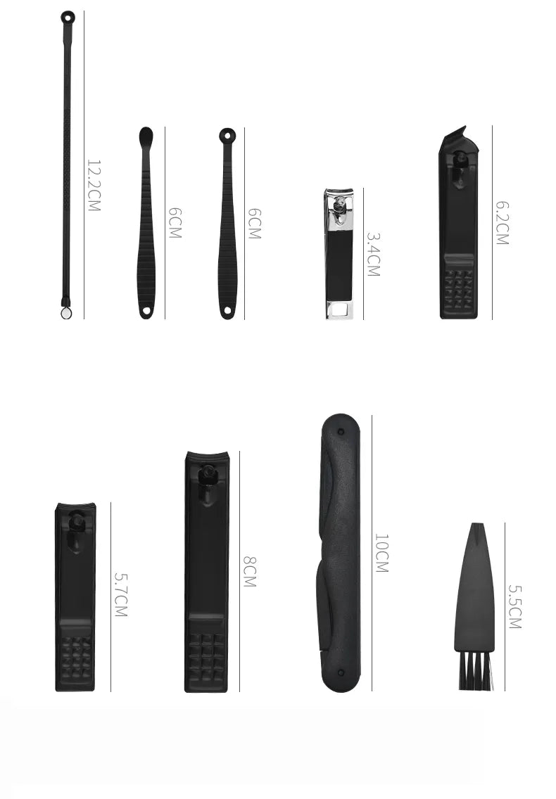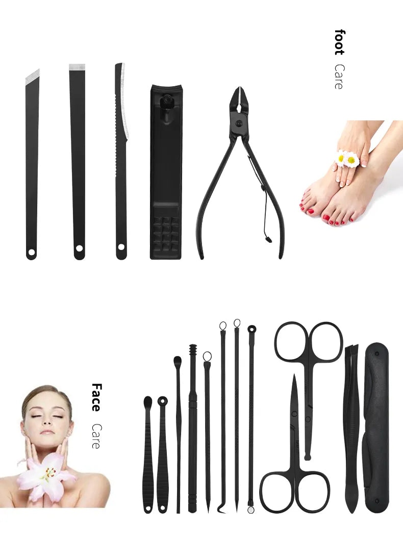 ● Faltbares oder kompaktes Design: Einige Sets können faltbare oder kompakte Nagelknipser enthalten, die einfach in einem Reise-Pflegeset oder einer Toilettentasche zu transportieren sind.