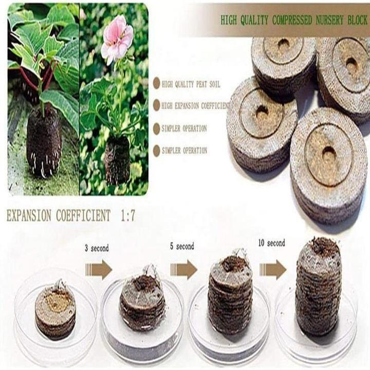 Der Durchmesser dieses Anzuchtblocks beträgt 3 cm. Fügen Sie einfach Wasser zu diesen komprimierten Setzlingen hinzu, und sie werden aufquellen. Anzuchtblöcke können ausreichend Nährstoffe bereitstellen, um das Wachstum von Samen und Setzlingen zu unterstützen. -