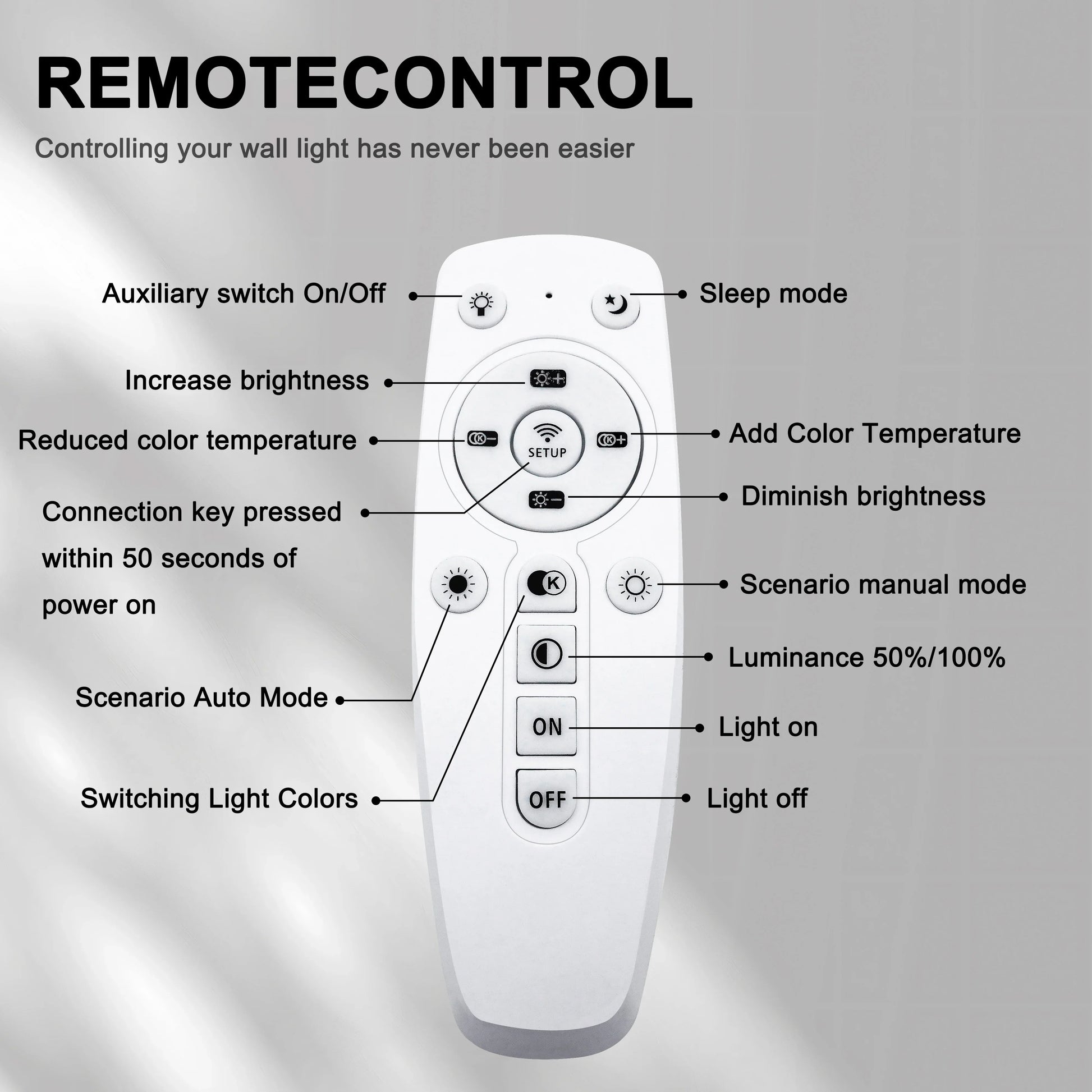 Bereichern Sie Ihr Zuhause mit dieser zeitgemäßen LED-Wandleuchte, die eine fernbedienbare Dimmfunktion und einen eleganten Aluminiumrahmen bietet. Diese stilvolle Wandleuchte ist darauf ausgelegt, angenehmes, augenschonendes Licht zu erzeugen und eignet sich hervorragend für Schlafzimmer, Wohnzimmer, Flure, Eingangsbereiche und Esszimmer. Dank einer einstellbaren Farbtemperatur von 3000K bis 6500K können Sie zwischen warmem und kühlem Licht wählen, um die ideale Stimmung zu erreichen.