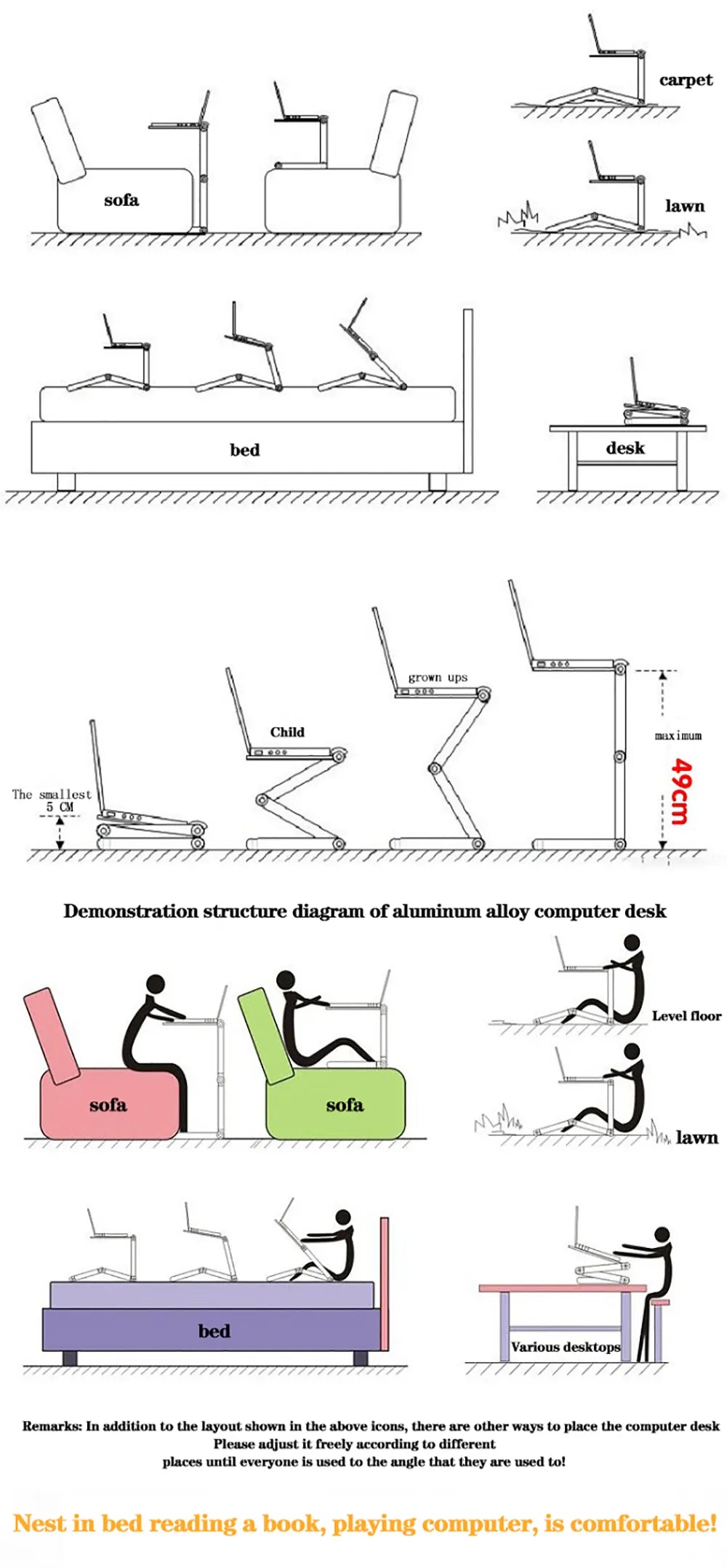 ● Der unglaublich flexible und leistungsstarke Laptop-Tisch kann in eine Vielzahl von Einstellungen, Verwendungsmöglichkeiten und Gegenständen umgewandelt werden, genau wie ein Transformer.
