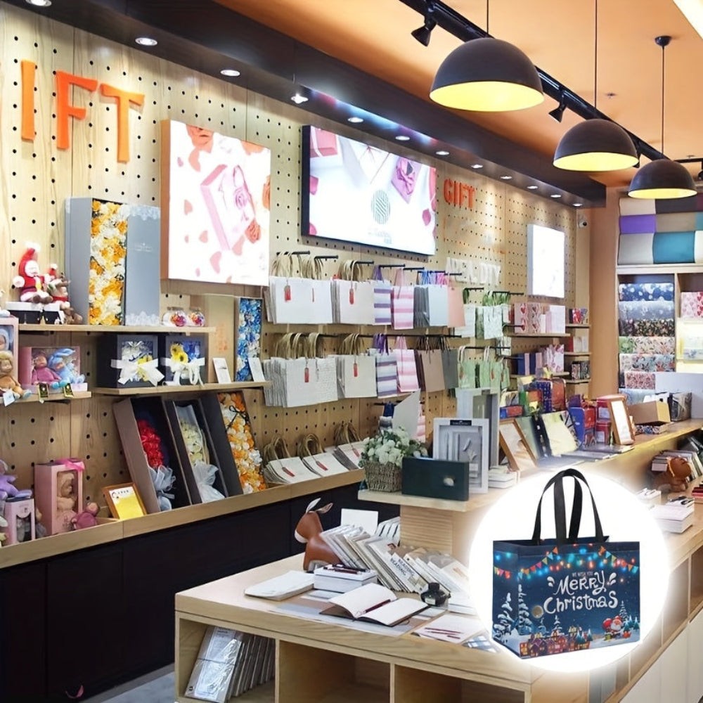 Diese Weihnachtstaschen machen das Verpacken in der Feiertagszeit einfach und ordentlich. Jede wiederverwendbare Tragetasche hat stabile Griffe und einen breiten Boden für Geschenkboxen, Spielzeug, Kleidung oder Leckereien. Die farbenfrohen Prints verwandeln jede Weihnachts-Geschenktasche in eine sofort verschenkbare Verpackung – ideal für Familie, Schule oder Partys. Eine clevere Wahl, wenn du weniger einpacken, mehr wiederverwenden und Geschenke schneller vorbereiten möchtest. Perfekt für Weihnachtsmärkte, Einzelhandelsaktionen und Klassengeschenke.